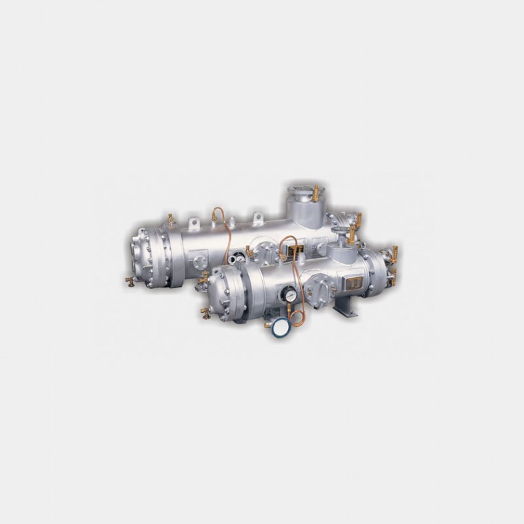 發(fā)電廠的表面冷凝器通常是直管式熱交換器。由于流體可以在同一側(cè)進(jìn)入和排出,因此通常采用兩次和四次設(shè)計(jì)。這使得結(jié)構(gòu)要簡單得多。通常有擋板引導(dǎo)流體通過殼側(cè),因此流體不會(huì)在殼側(cè)短切,導(dǎo)致無效的低流量。這些通常附著在管束上,而不是殼上,以便管束仍然可以移除以維護(hù)。